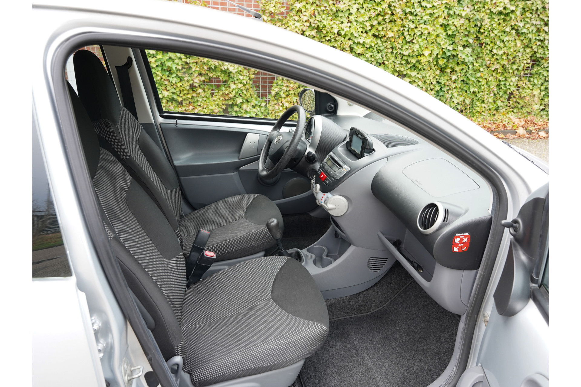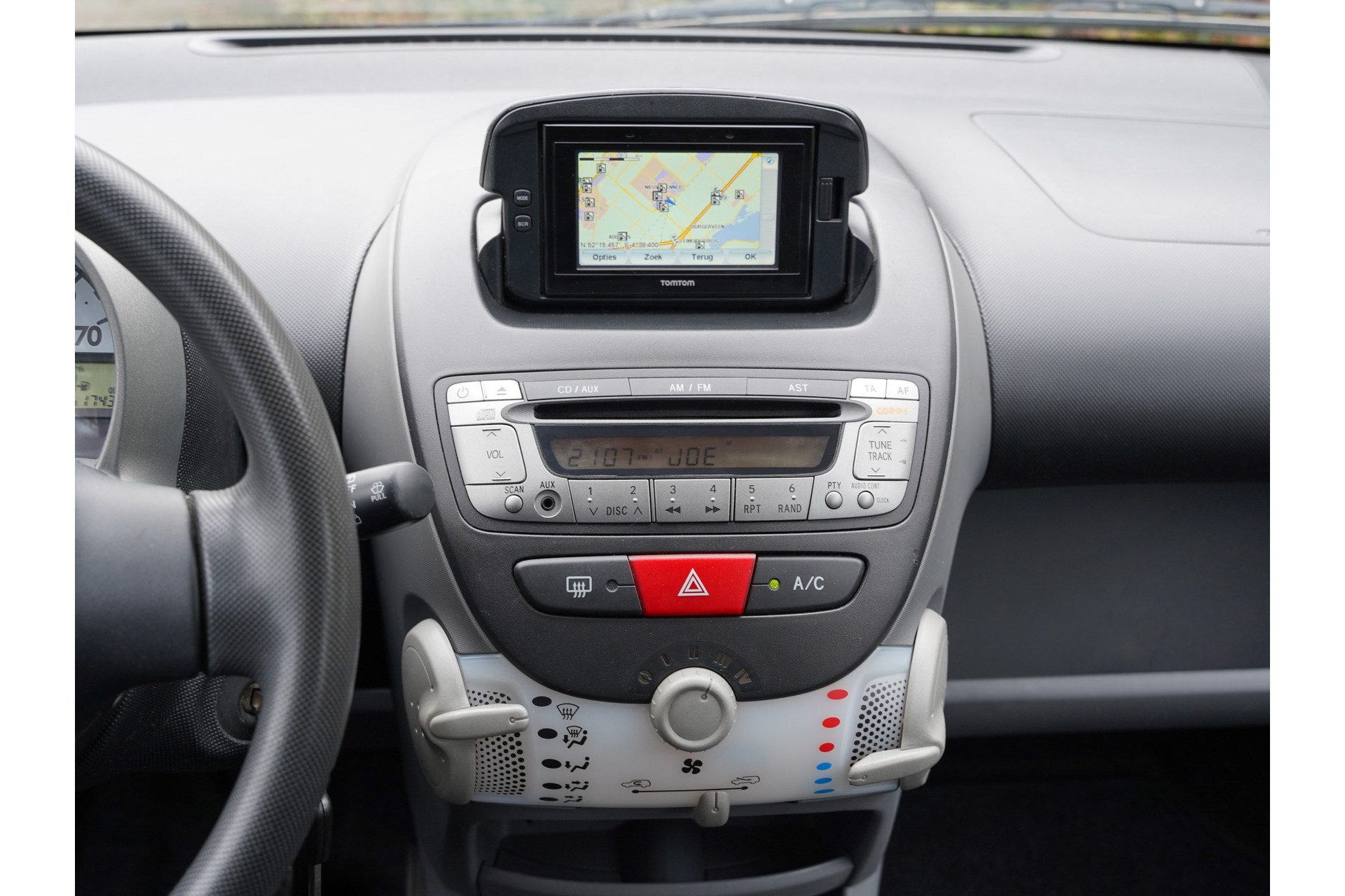 De Aygo heeft fijne opties, waaronder Navigatie, Airco, Bluetooth Telefoonverbinding en Elektrische ramen.